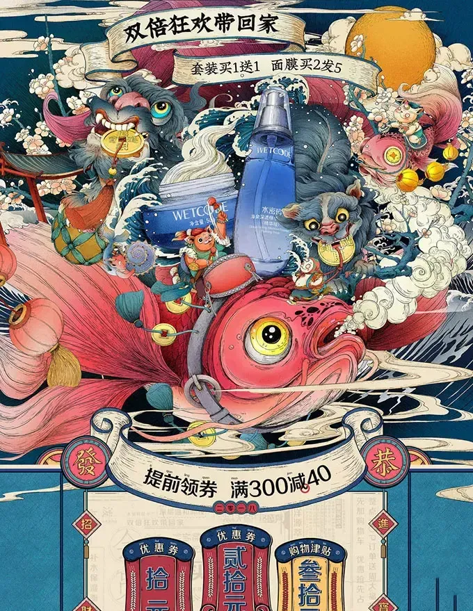 在电商首页的设计中,常会将页面分拆成一个个模块,再拼合成整个页面,使首页看起来层次分明、架构明显。首页布局就是有目的地展示商品,让顾客快速找到商品,实现电商形象传递和营销目的。