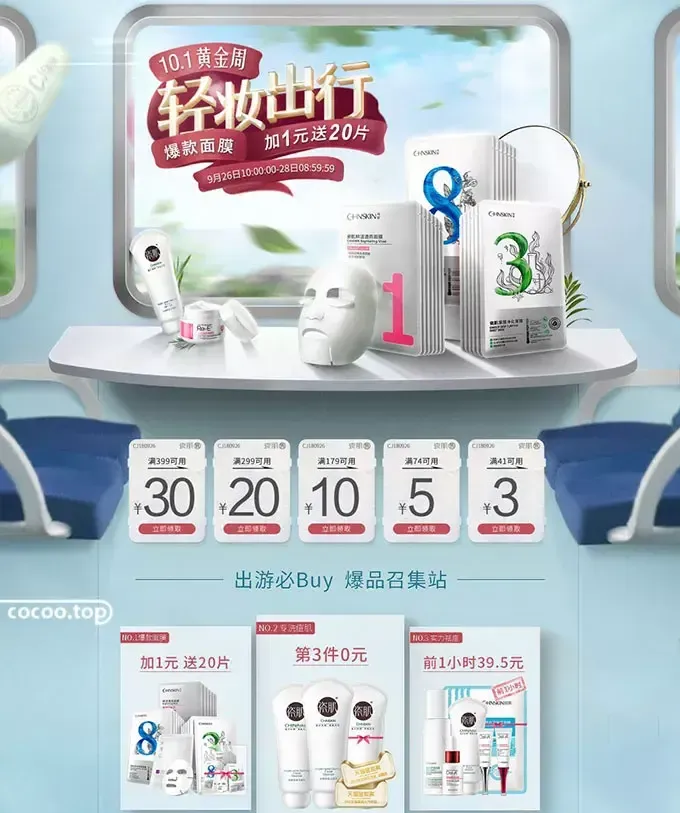 促销性首页要突出打折力度、促销产品的性价比和引导顾客查找商品,带有促销信息的海报和导航模块。