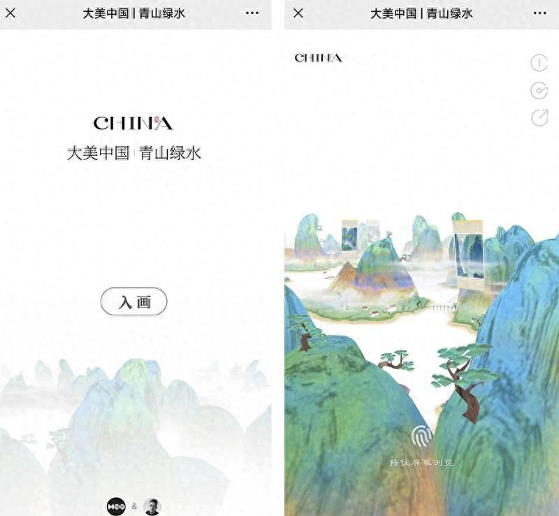 项目亮点:进入H5页面,长按屏幕即可畅览《云游大美中国》系列作品,每幅画作都带有古诗词、仙鹤等元素,让您感受东方美学之美。完成浏览后,画作将以滑动形式展现在屏幕上,伴随相应诗词,用户即可保存欣赏。