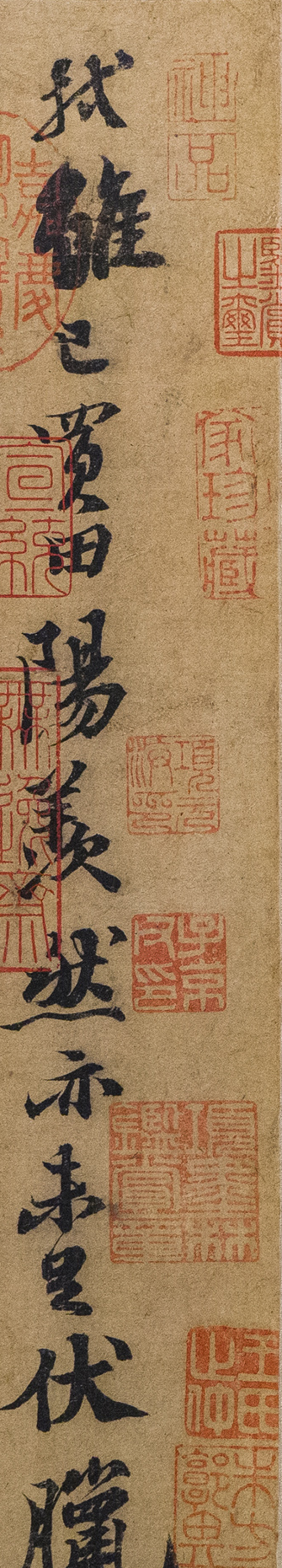 传闻当年宣统帝爱新觉罗·溥仪携带大量历代内府所藏字画名迹,偷藏于东北(长春)伪宫“小白楼”,苏轼的作品也在其中。战后,溥仪慌忙逃离,许多宫内珍宝被遗弃在“小白楼”中。混乱中,乱兵发现了楼中的宝藏,掠夺一空,苏轼的作品被散落民间。后来被文物部门征购入藏,成为旅顺博物馆的镇馆之宝。
