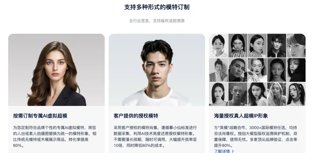 AI形象不受服装改变影响,长期稳定呈现在商家电商平台,解决传统拍摄问题。