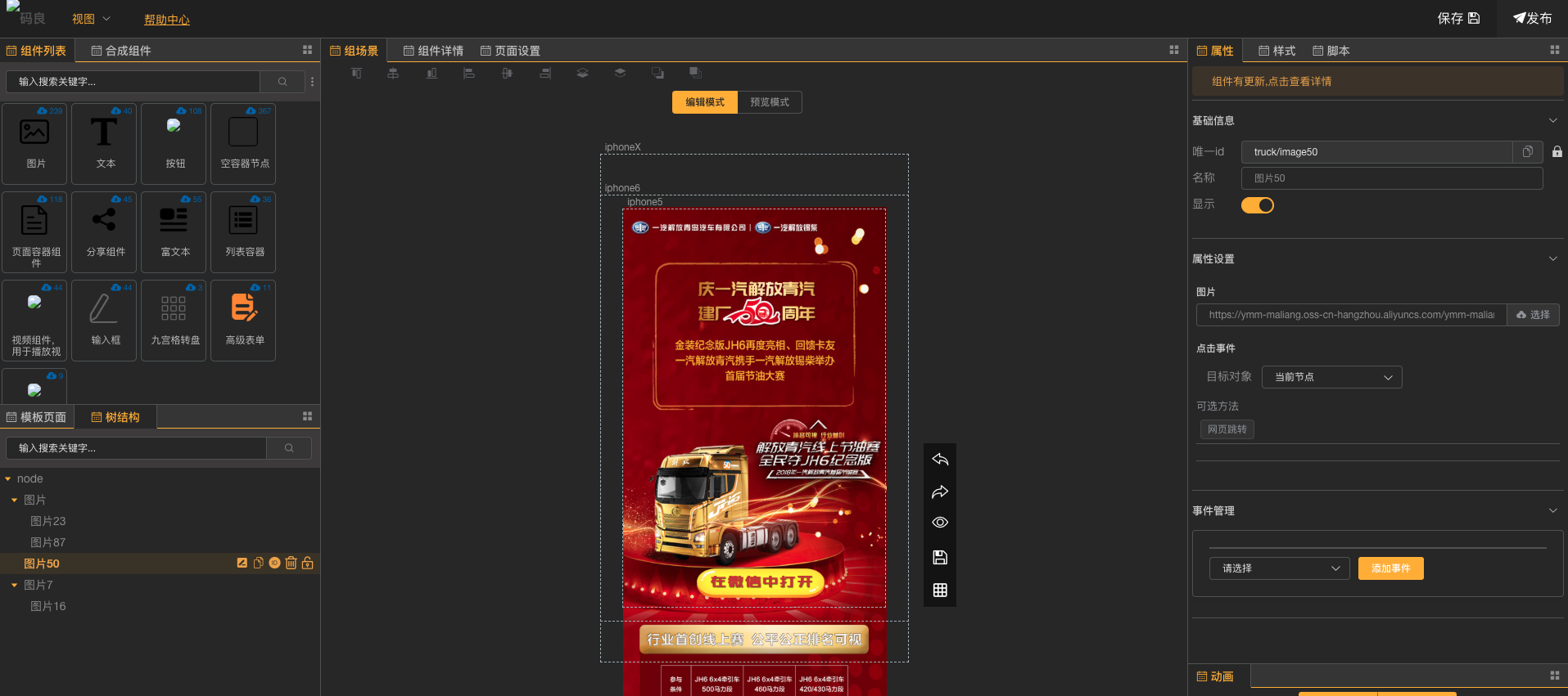 是一个在线生成h5页面并提供页面管理和页面编辑的平台,用于快速制作H5页面。用户无需掌握复杂的编程技术,通过简单拖拽、少量配置即可制作精美的页面,可用于营销场景下的页面制作。同时,也为开发者提供了完备的编程接入能力,通过脚本和组件的形式获得强大的组件行为和交互控制能力。