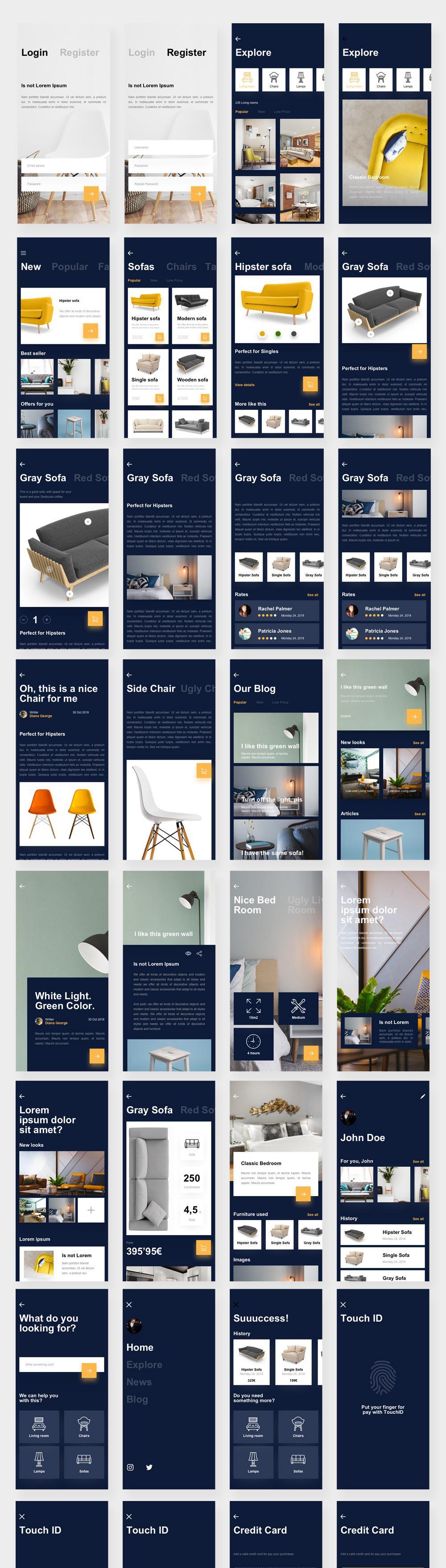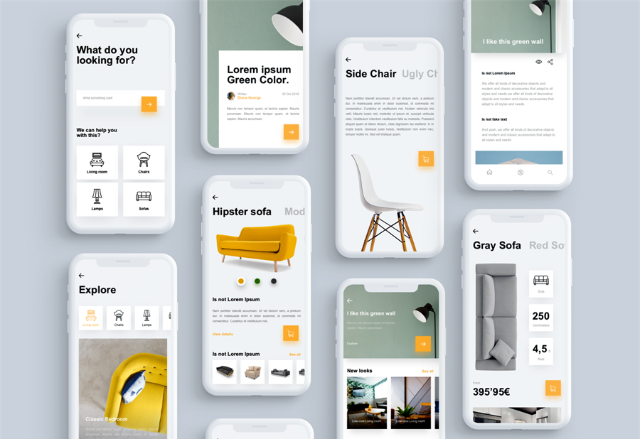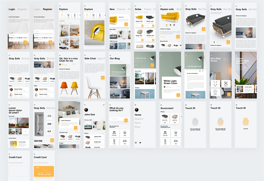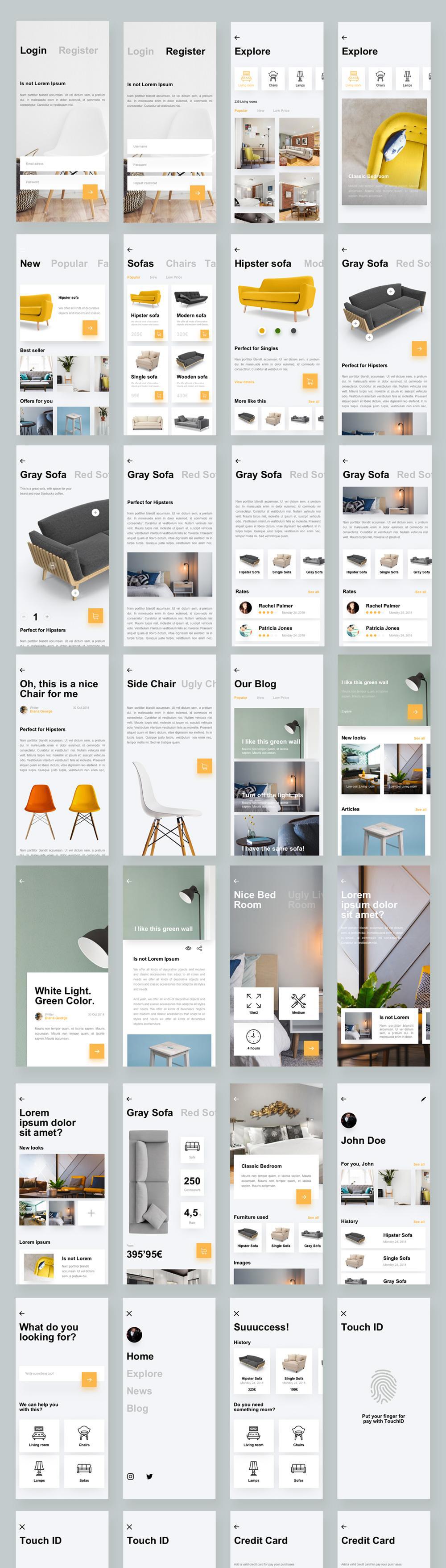 简约家居整套家具电商APP模板UI界面设计素材下载