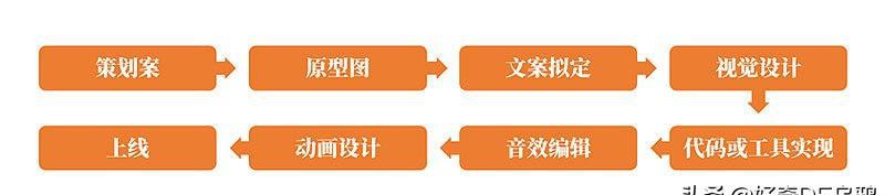 制作流程:策划案—>原型图—>文案拟定—>视觉设计—>动画设计—>音效编辑—>代码或工具实现—>上线