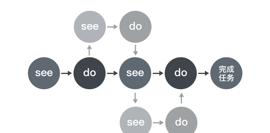 在互联网产品设计中,我们需要考虑的因素更复杂,这就要求交互设计更高效,核心在于"看到什么(see)、做什么(do)、完成什么任务"。