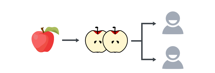 实际生活中的情况会更复杂,比如一个苹果要两人分享,这时如何设计这个行为呢?