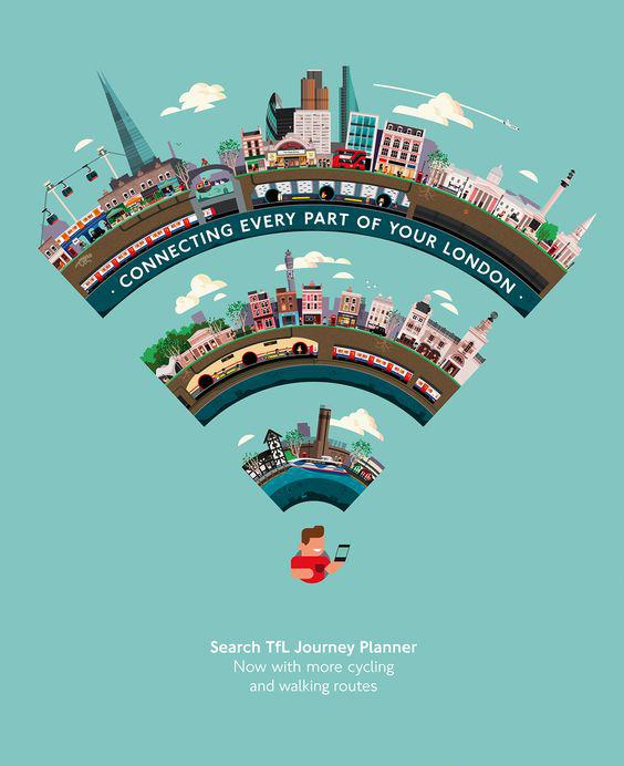 伦敦交通局的公共信息海报就是一个很好的例子,用插画促进地铁WiFi连接。