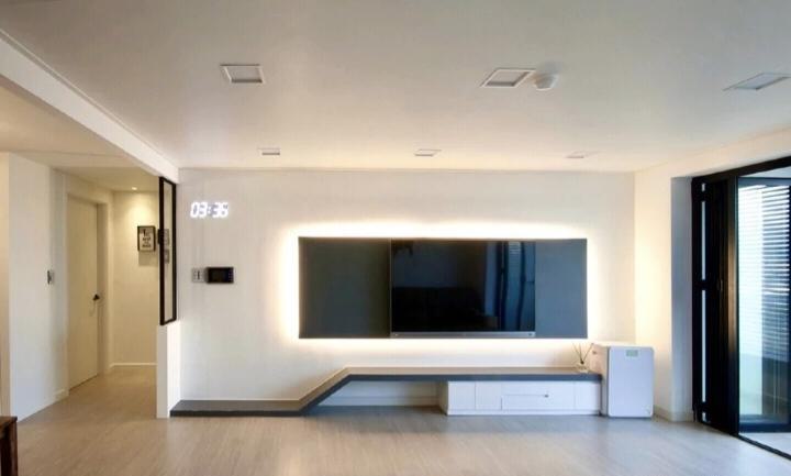 极简风格注重大面积空间感,家具选择精致大方。定制整体家具,打造顶天立地式的电视柜,简约而不失品质。