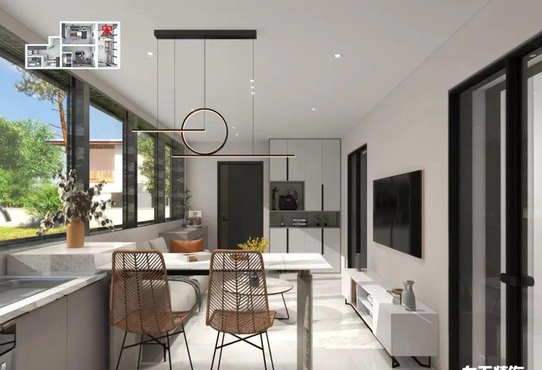 餐厅紧挨厨房,改造需设置冰箱、餐桌,以及提升就餐环境。