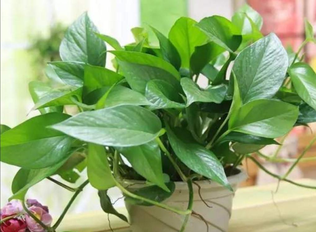 绿萝叶片浓绿秀美,四季常绿,可改善空气质量。耐折腾,保持盆土湿润,适量施肥。
